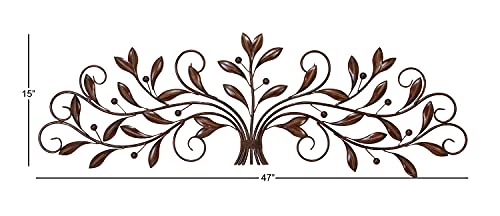 Deco 79 Metal Leaf Home Decor Sculpture, Wall Art 47″ x 1″ x 14″, Brown