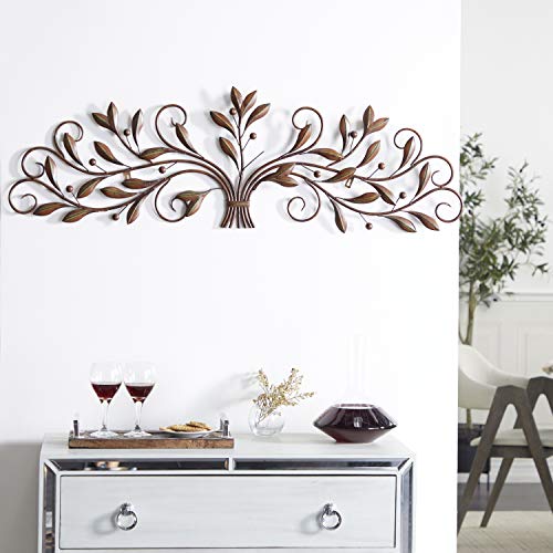 • LEAF ARCHED ROOM WALL DECOR: The brown tree wall decor features leaves with small berry-like fruits and soft scroll branches spreading horizontally