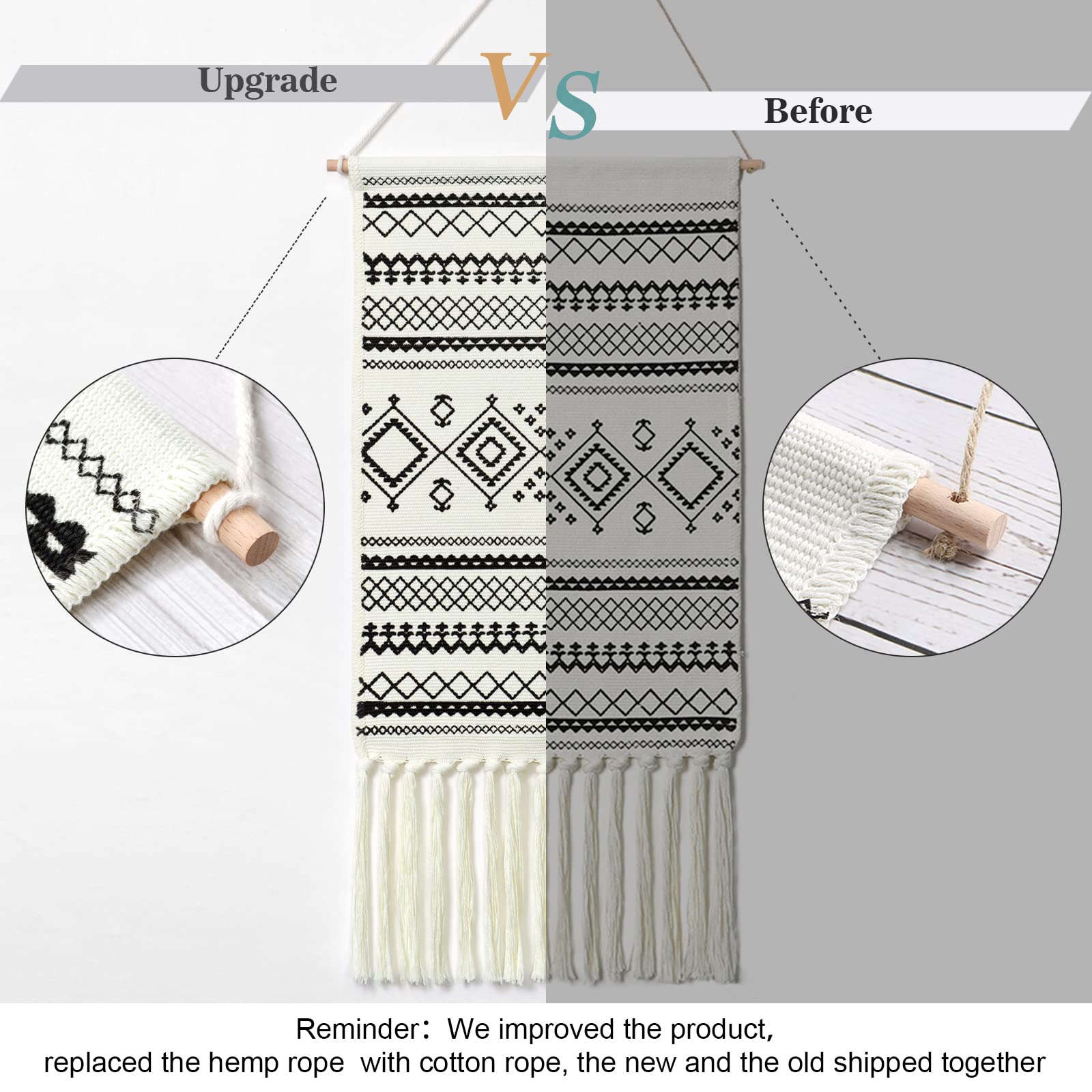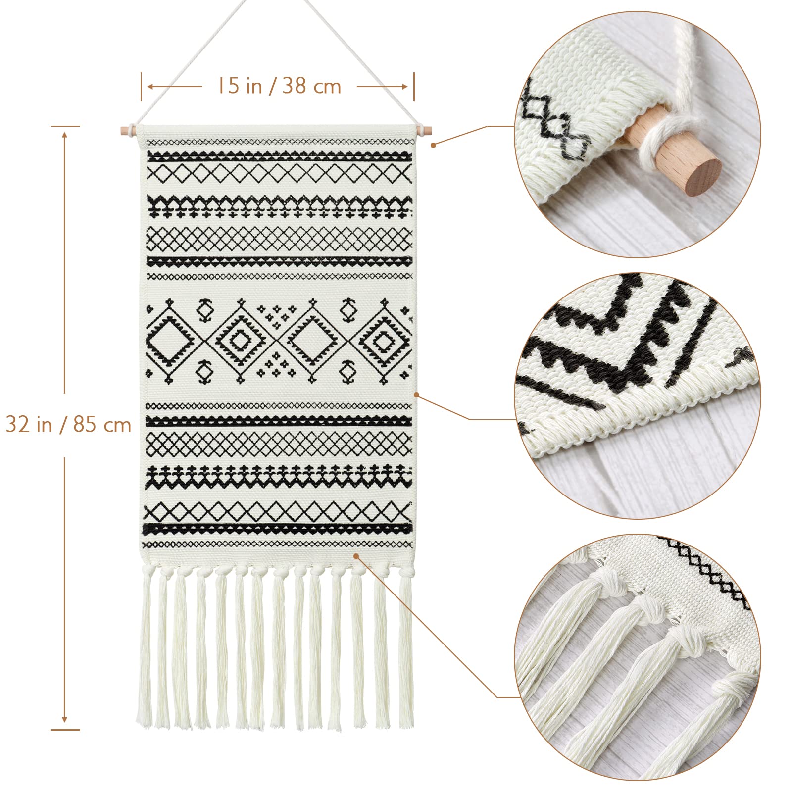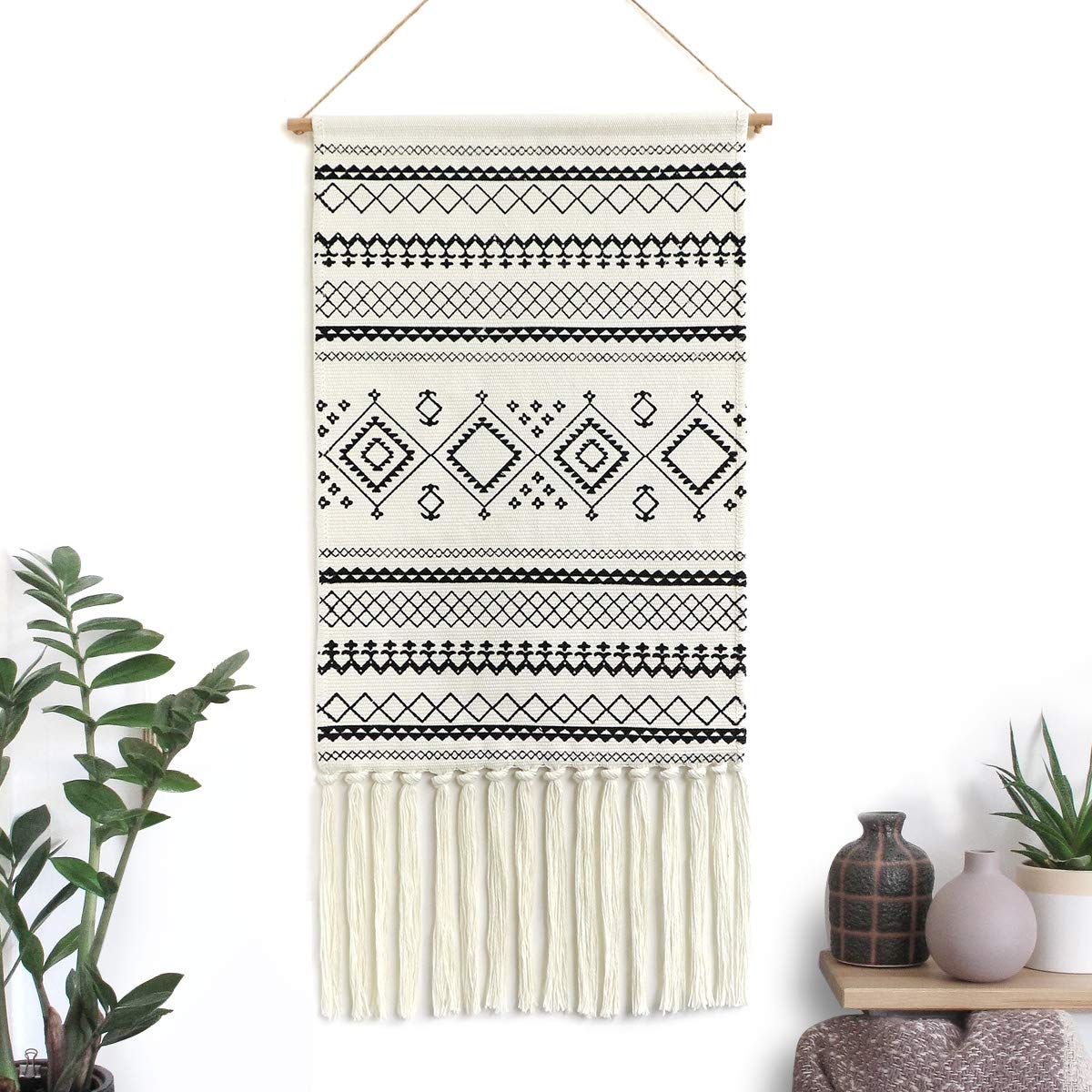 Dremisland Macrame Woven Wall Hanging Tapestry- Boho Chic Bohemian Home Decor Geometric Art Decor Boho Backdrop – Beautiful Apartment Dorm Room Door Decoration, 17.7″ W x 32″ L (Sendia-Black)
