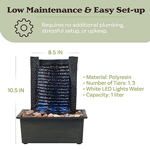 - LOW MAINTENANCE – There is no additional plumbing, stressful setup, or fussy upkeep required for this easy-to-maintain home or office décor item. This mini waterfall is built to last, so it’s sure to be the focal point of any room for years to come.