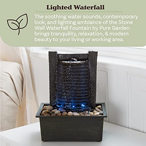 Indoor Fountain with LED Lights – Lighted Tabletop Water Feature with Stone Wall and Soothing Sound – Zen Décor for Home or Office by Pure Garden