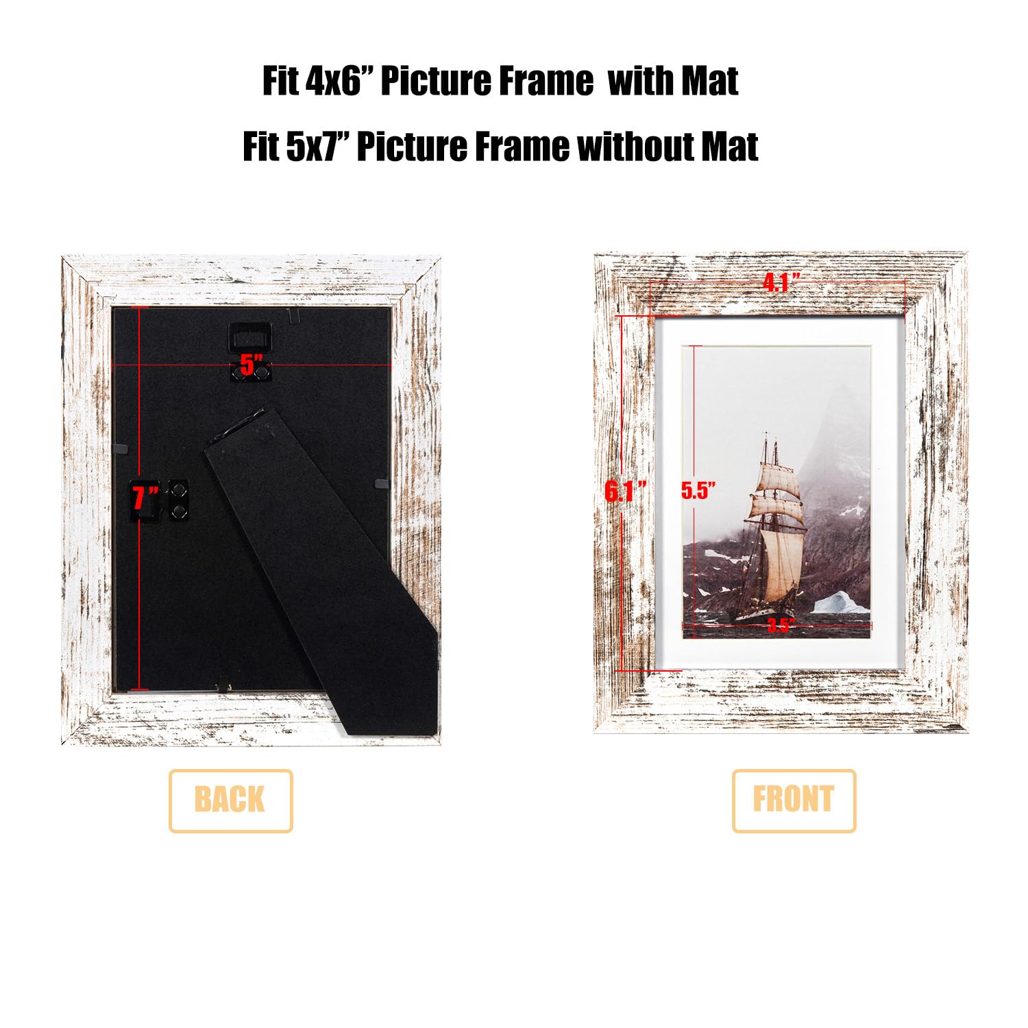 - Color Size: Rotten white 5×7 inch Picture Frame Made to Display Pictures 4×6 inch with Mat or 5×7 inch without Mat.