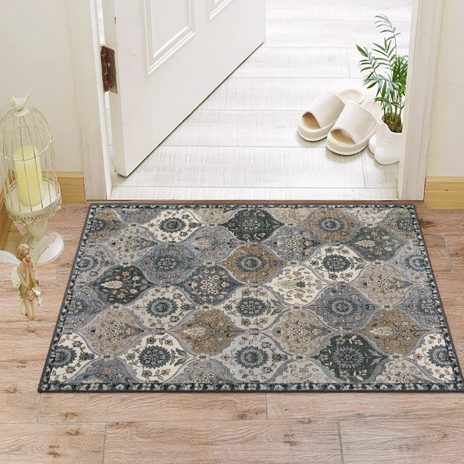 Lahome Moroccan Trellis Area Rug, 2×3 Entry Rug Non-Slip Washable Indoor Door Mat, Small Oriental Accent Throw Rug for Bedroom Kitchen Entryway Bathroom (Grey, 2x3ft)