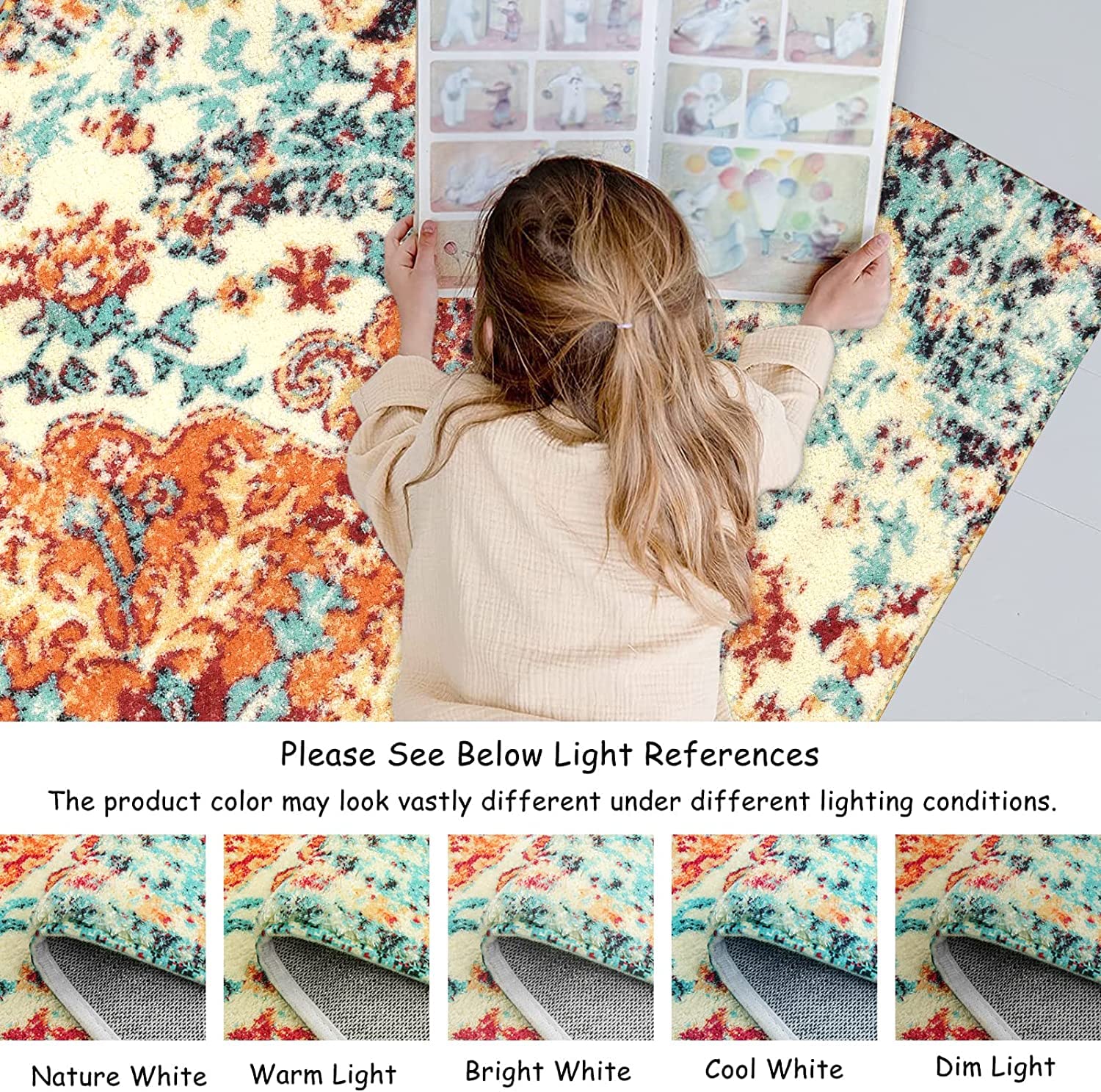- [Safety Non-Slip Mat] – Our indoor accent rug made of extra-absorbent fabric top layer and skid resistant backing which is safe for everyday indoor high traffic area from kid or pet activity. (Keep the bottom of the rug always be dry.)