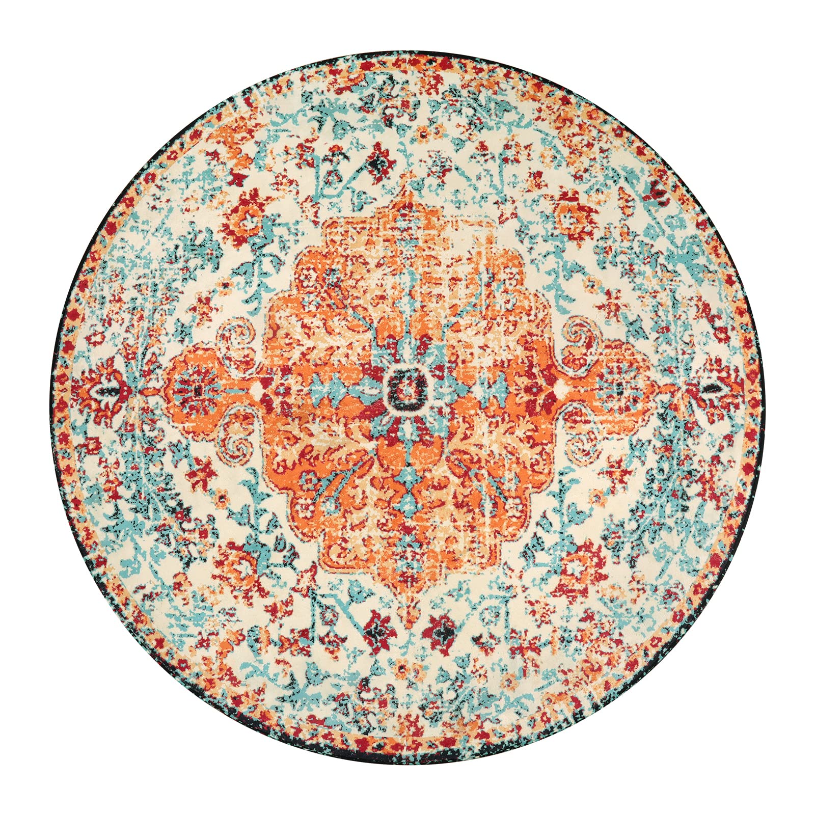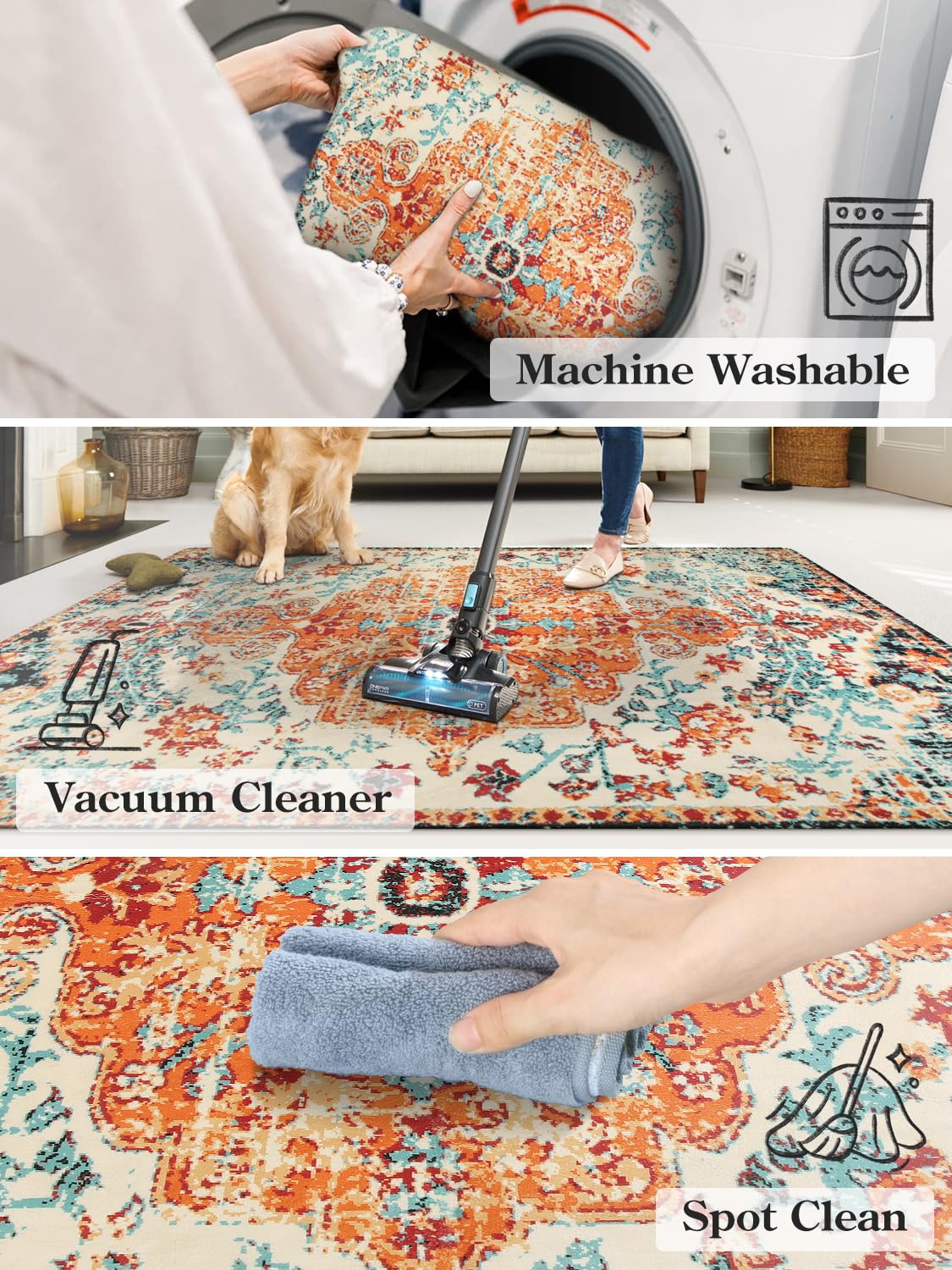 Lahome Washable Round Rugs 5’3″ft, Bohemian Orange Circle Rugs for Living Room, Entryway Round Area Rug, Floral Medallion Soft Non Slip Nursery Carpet for Bedroom Dining Coffee Table