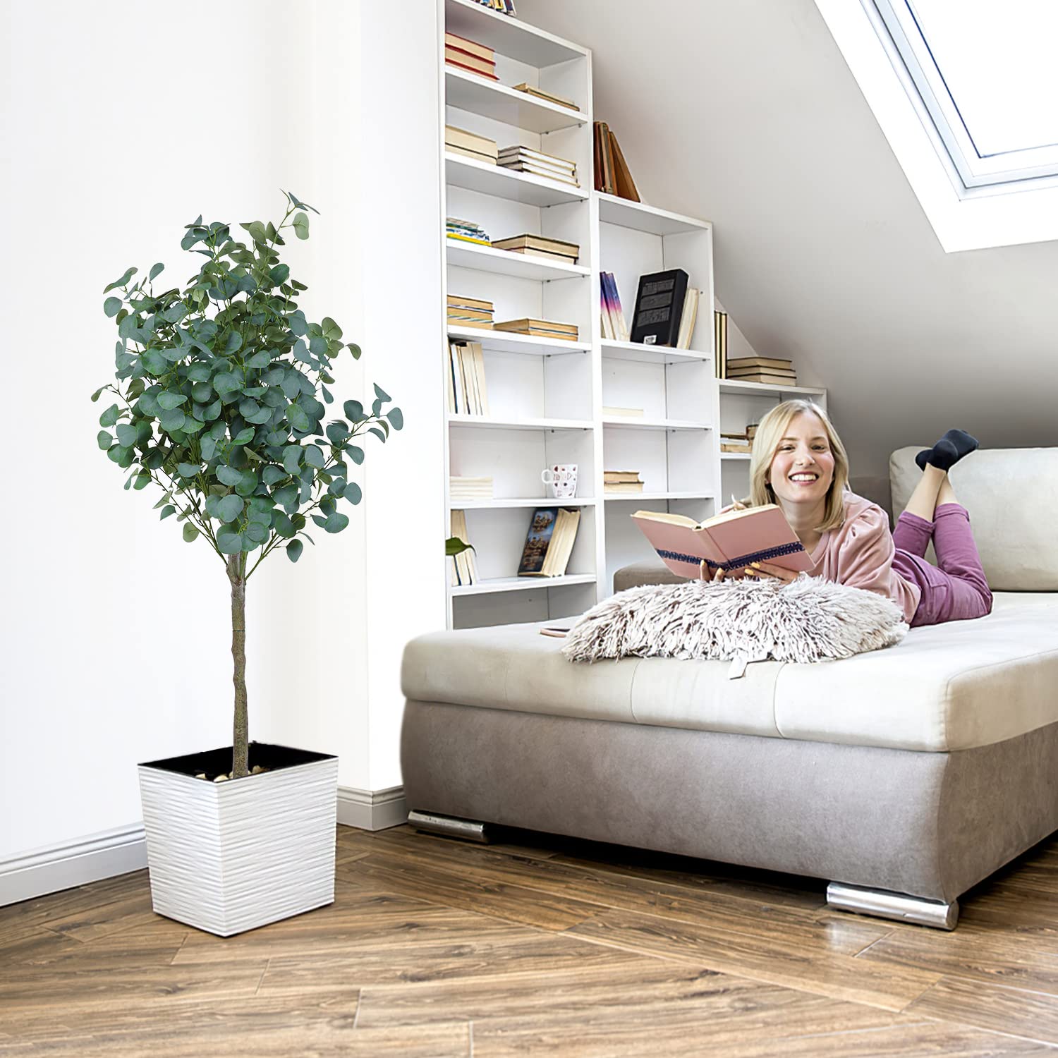 Meneco Potted Artificial plant Plant – 5ft Tall Fake Plant Large Faux plant Indoor Home Decor Fake Floor Plant in Pot (60”, Eucalyptus)