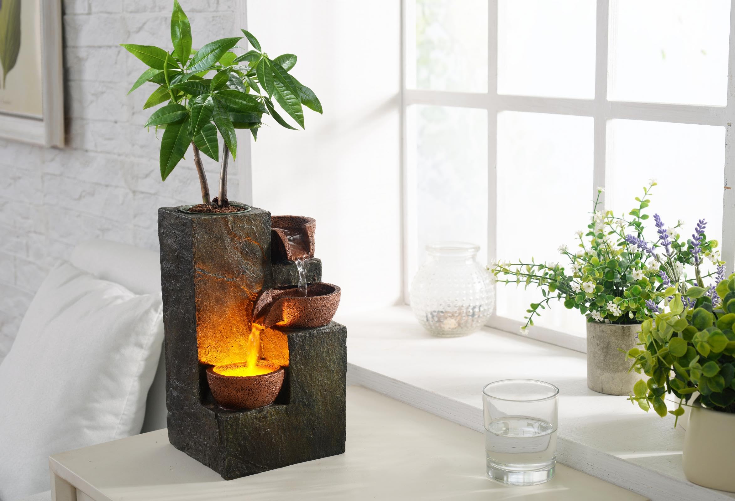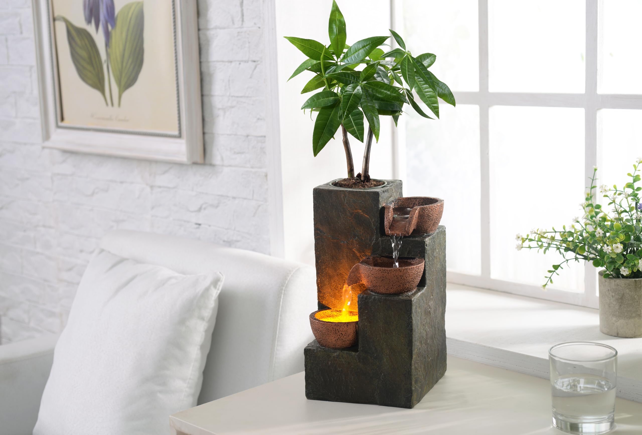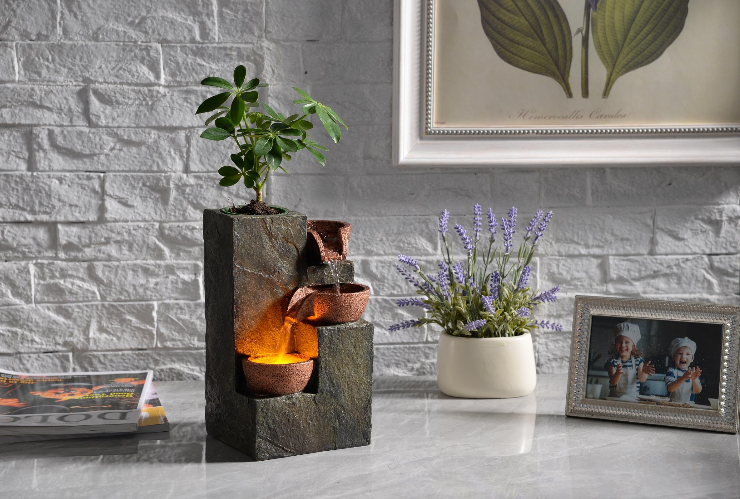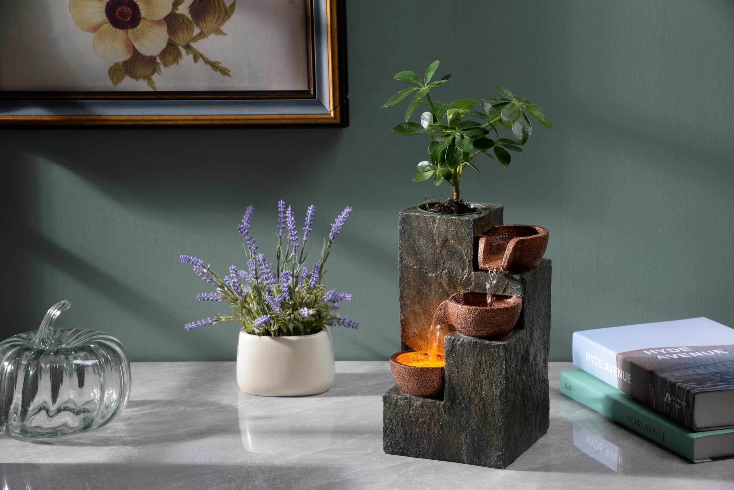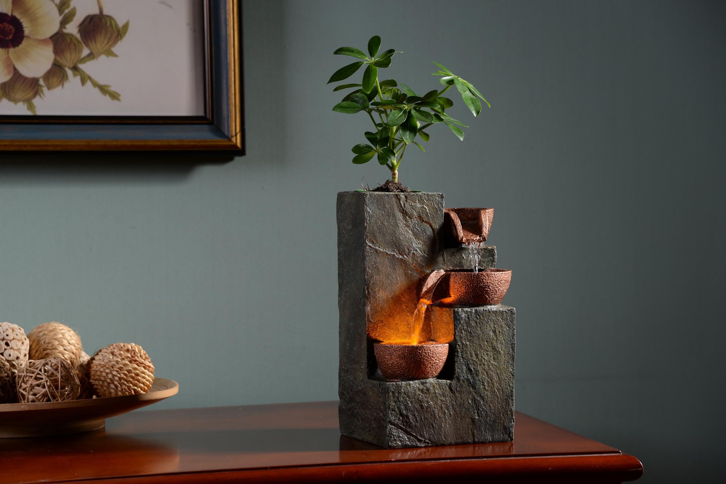 MSEONWXI Indoor Fountain Waterfall Tabletop for Home Decor Three Bowls Rock 3 Tier Fountain Relaxing and Sound Plant by Yourself(23061)