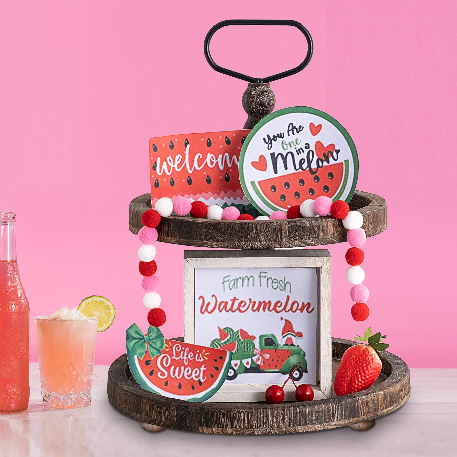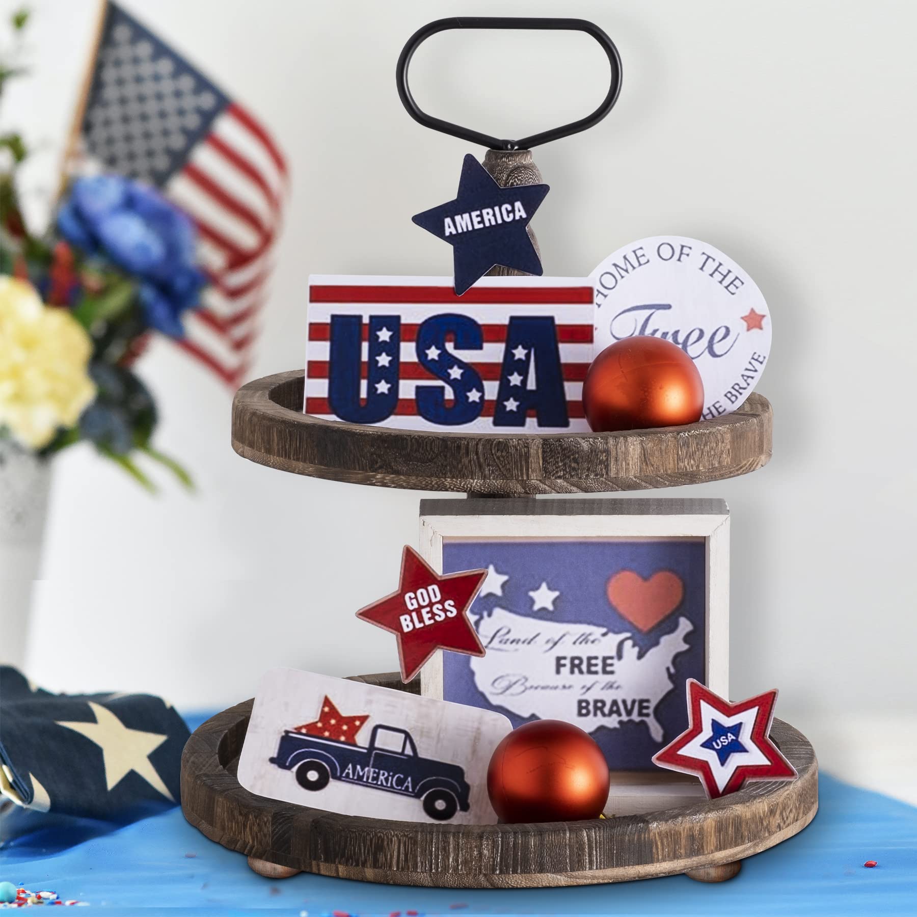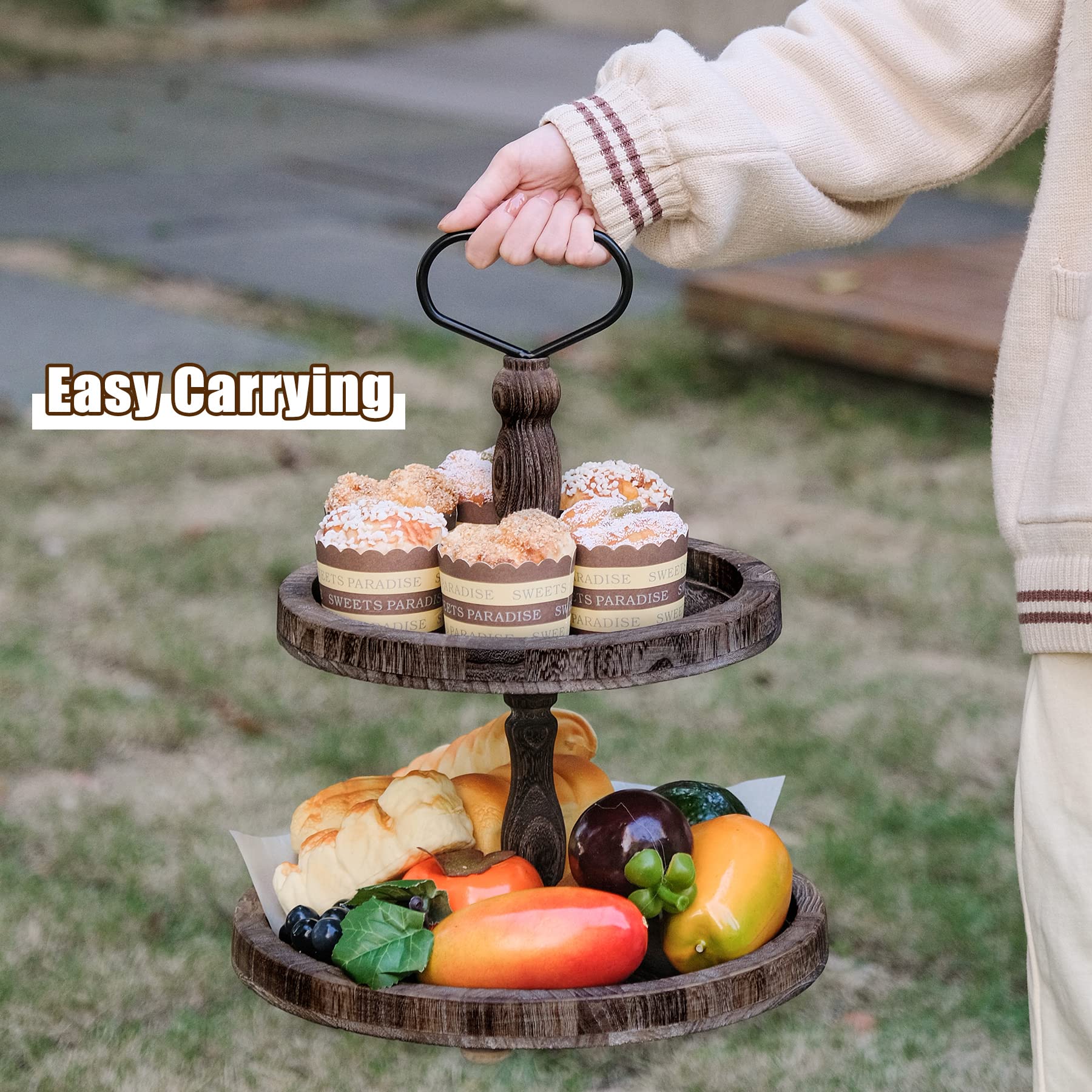 - Improve Space Utilization & Easy Transportation – 2 tier tray can effectively save space. Sturdy handle allows for easy carrying from counter to table or room to room smoothly and safely. Removable when not in use for easy storage. Add the tiered tray to your home to create a fun rustic farmhouse theme!