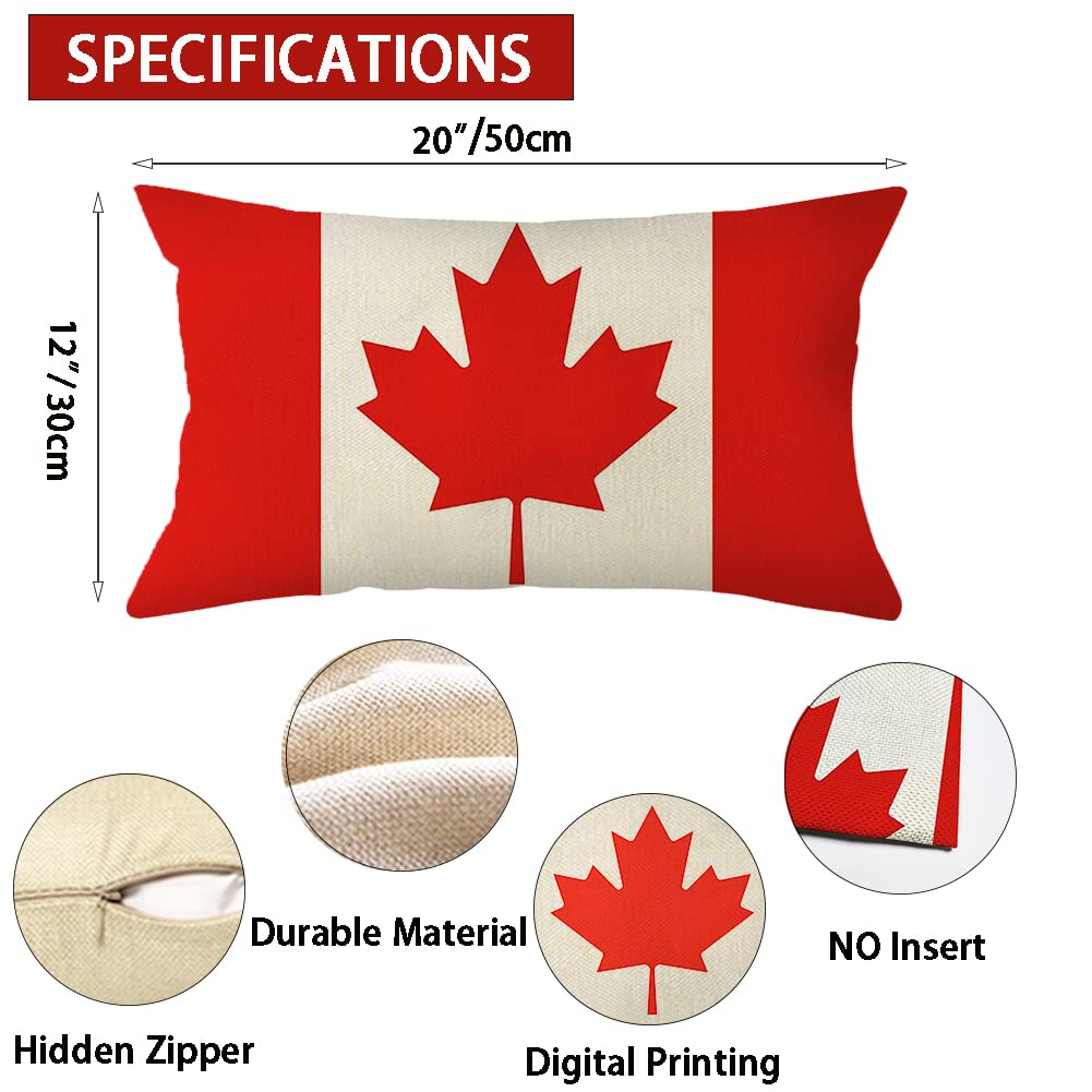 Ogiselestyle Canada Maple Flag Throw Pillow Cover, 12 x 20 Inch Canada Flag Cushion Case Decoration for Sofa Couch