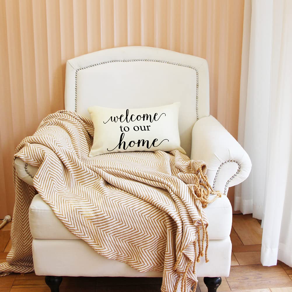 Ogiselestyle Farmhouse Pillow Covers with Welcome to Our Home Quotes 12 x 20 Inch Home Decorative Cushion Case for Sofa Couch Housewarming Gifts Family Room Décor