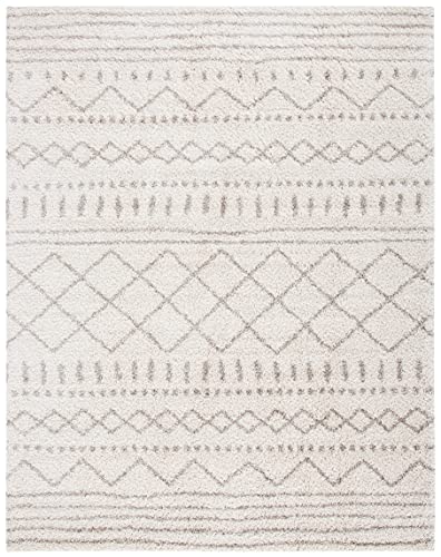 SAFAVIEH Arizona Shag Collection Area Rug – 8′ x 10′, Ivory & Beige, Moroccan Design, Non-Shedding & Easy Care, 1.6-inch Thick Ideal for High Traffic Areas in Living Room, Bedroom (ASG741A)