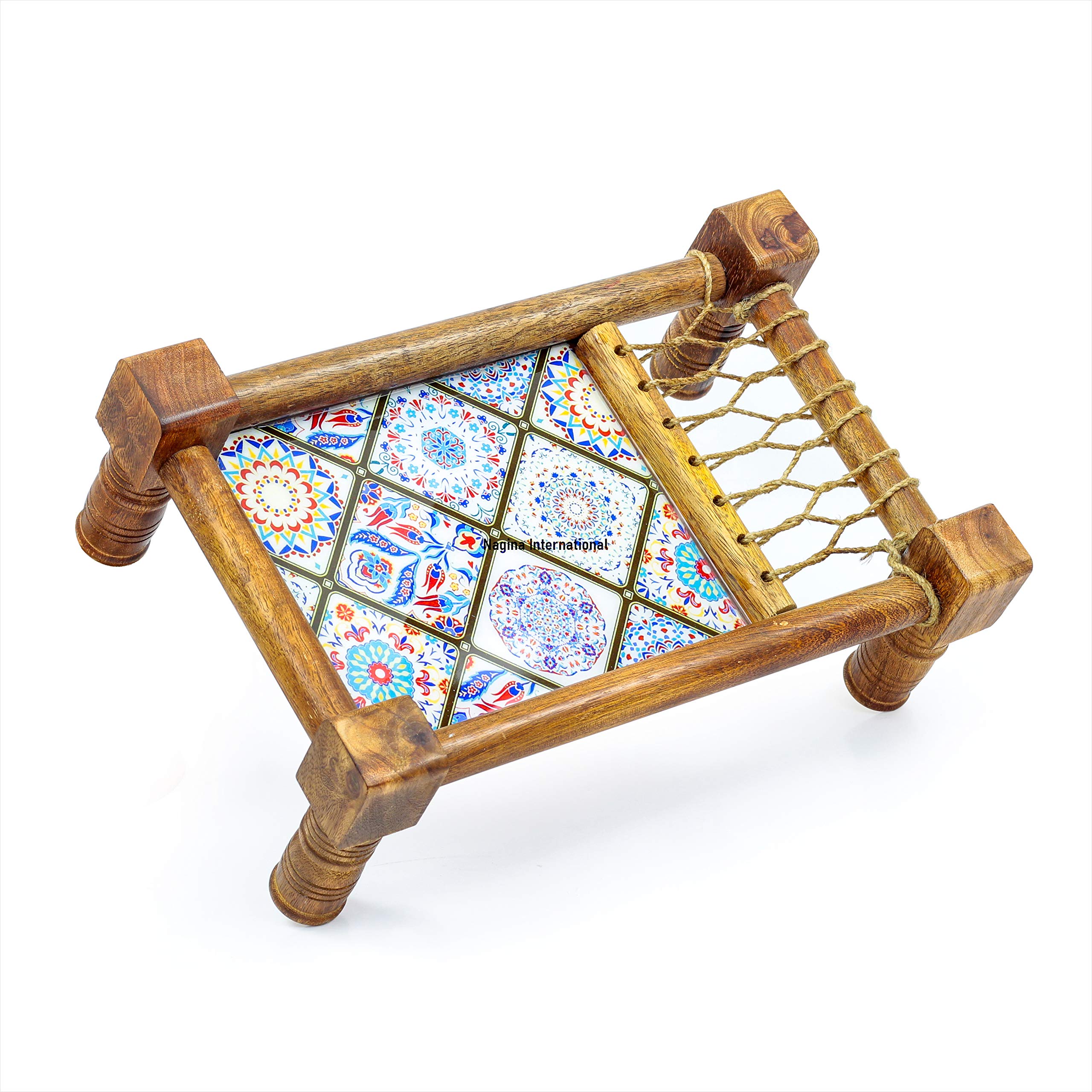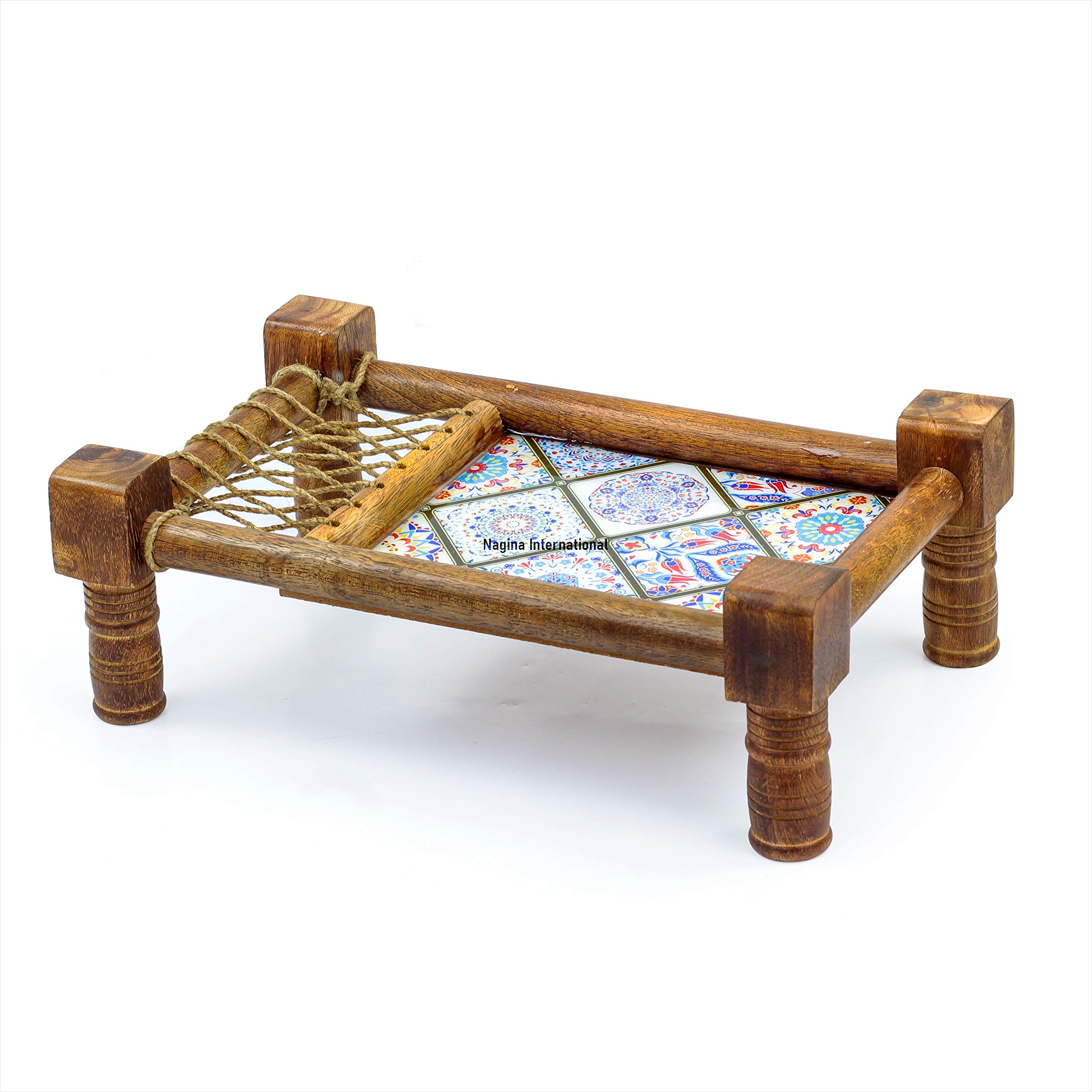 Traditional Decorative Asian Cot Tray for Snacks & Drinks | North Indian Decorative Wooden Coat Decor Accent | Nagina International