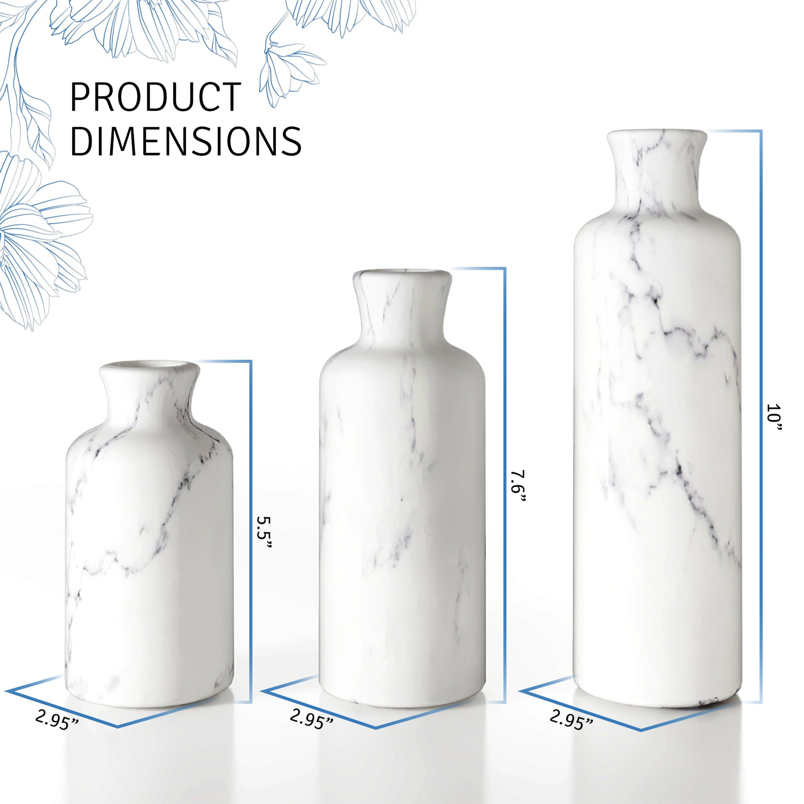 White Vase Set – Vases for Decor, Perfect for Holding Pampas Grass, Dried/Fresh Flowers, Vases for Your Kitchen, Bedroom, Office, Living Room, Bathroom, or Shelf Decor (Marble Look)
