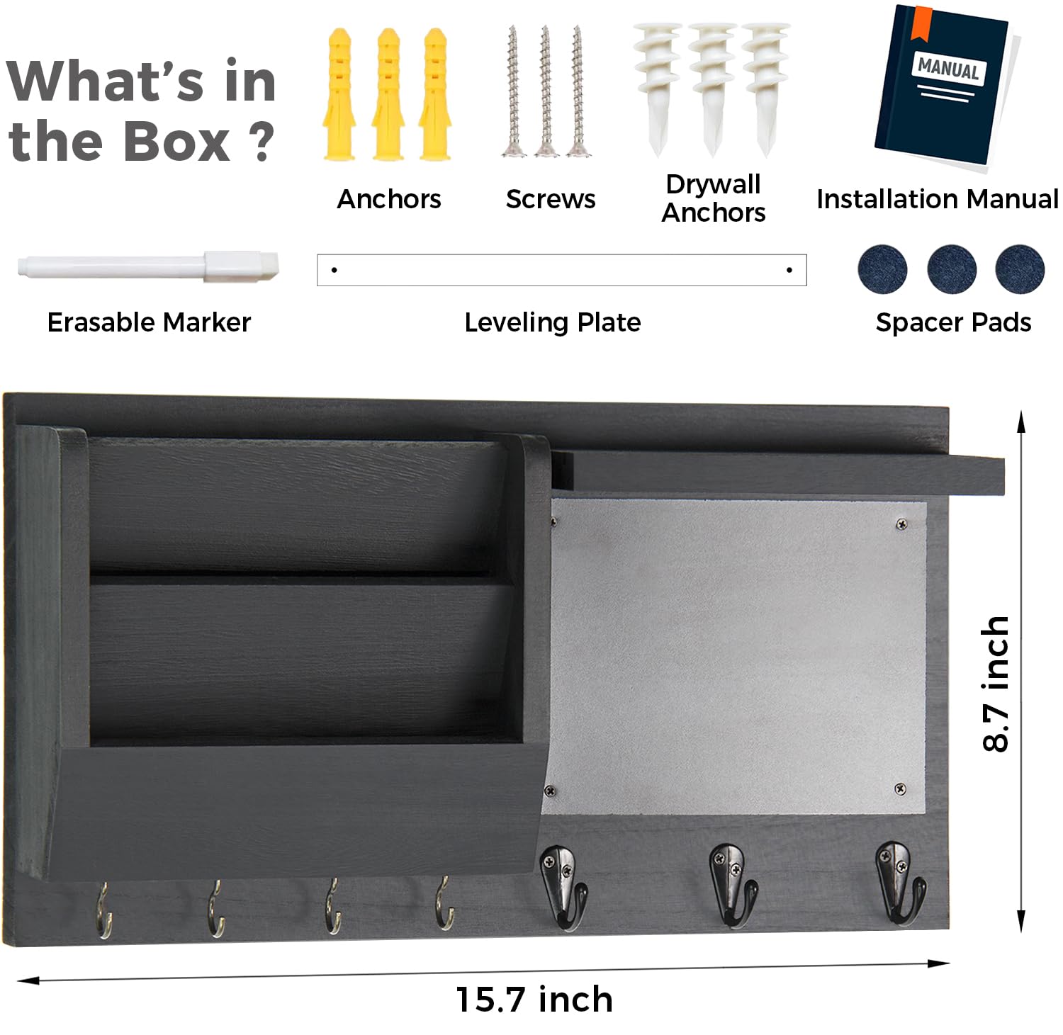 - Built for Last: Constructed with 100% high-quality solid wood with furniture grade finish, and tough metal hooks, this key hanger is designed to stand up against years of use. The marker pen is super easy to erase for mess-free writing.